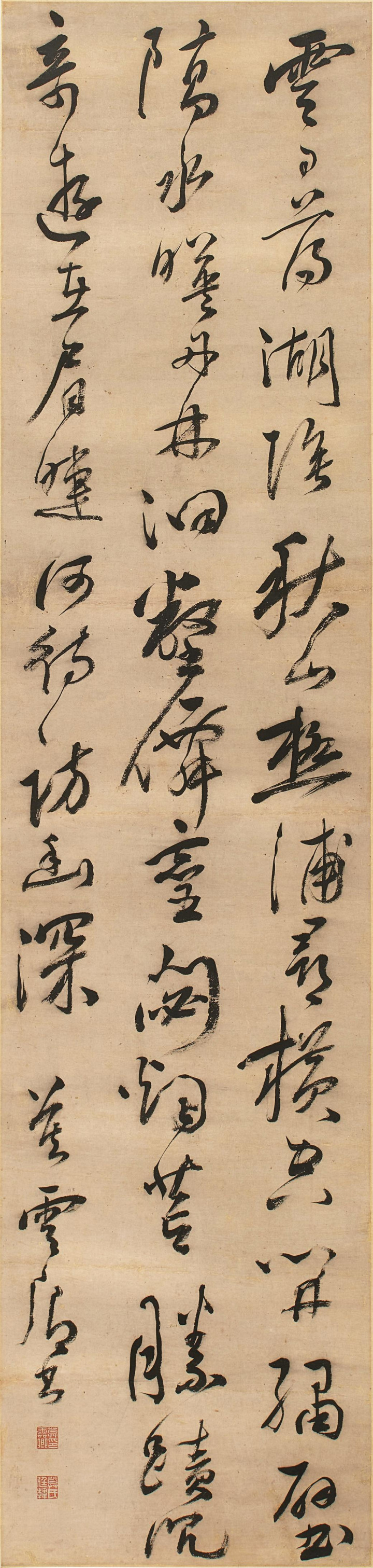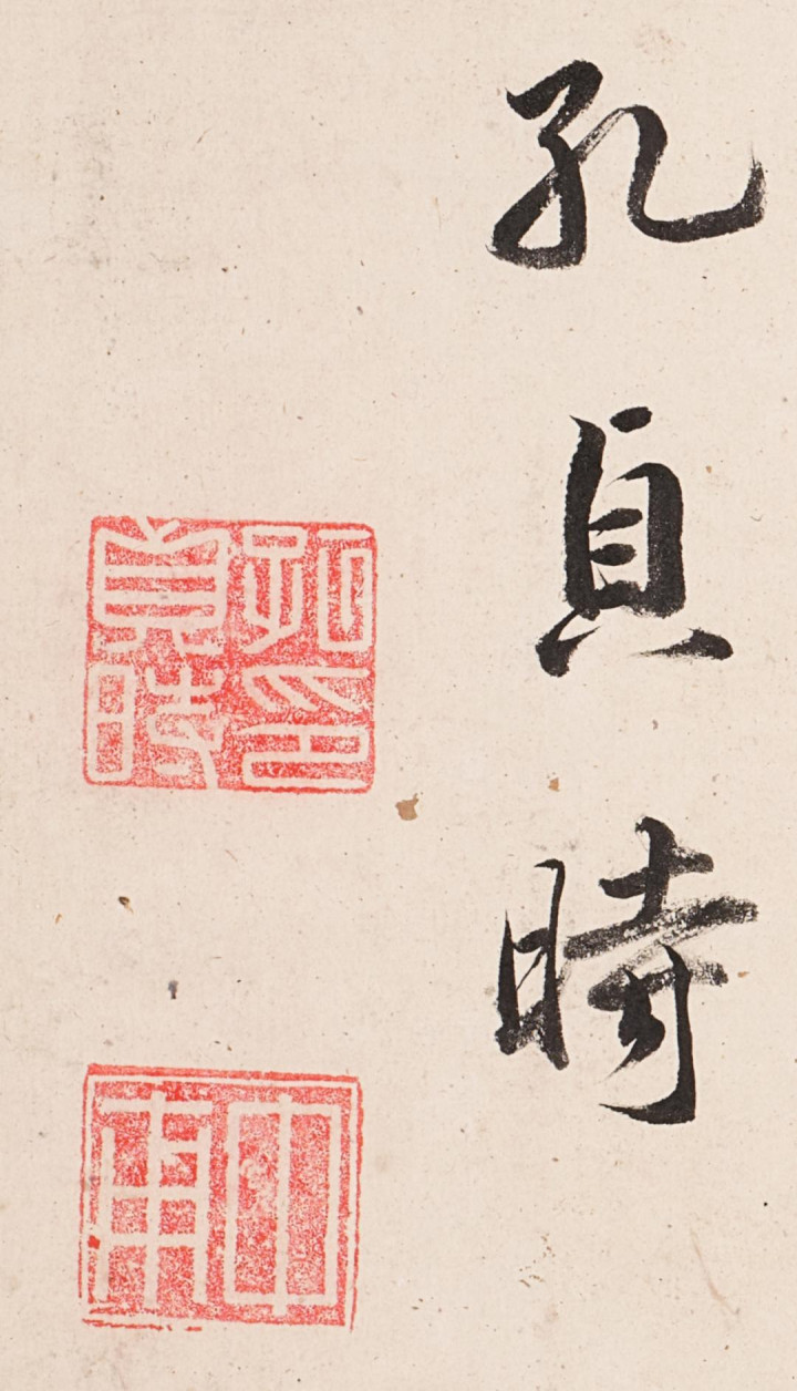 本幅为崇祯间宰相、孔子第六十三代孙孔贞运所书。孔贞运于明末名于时,于文人、政治圈皆有影响,以孔氏后裔身分得以保持「中立派」,不介入党争,时人称「玉横相国」,后因与倪元璐、黄道周、钱谦益等友善,被卷入东林党争而隐退。本幅附其门人黄三省跋诗,黄氏史载甚少,仅知其为陕西富平人,望族之后,于南明任千总,后降清。孔贞运书迹传世极稀见,查公私所藏,除扇面二幅外,本幅为仅见。