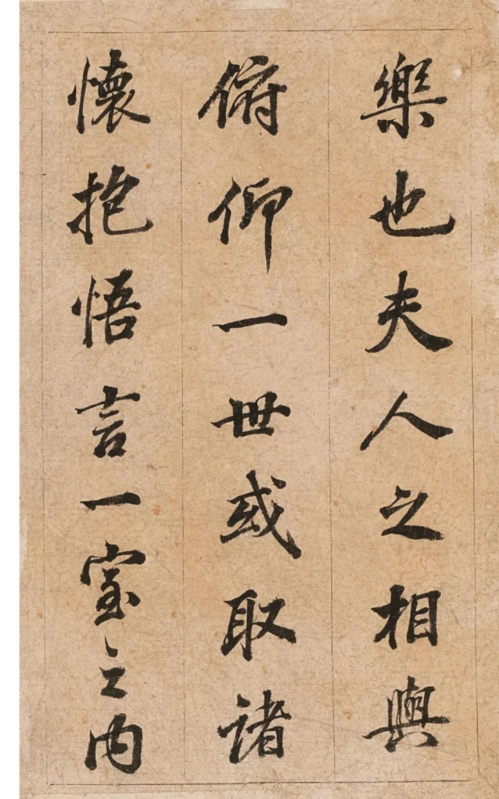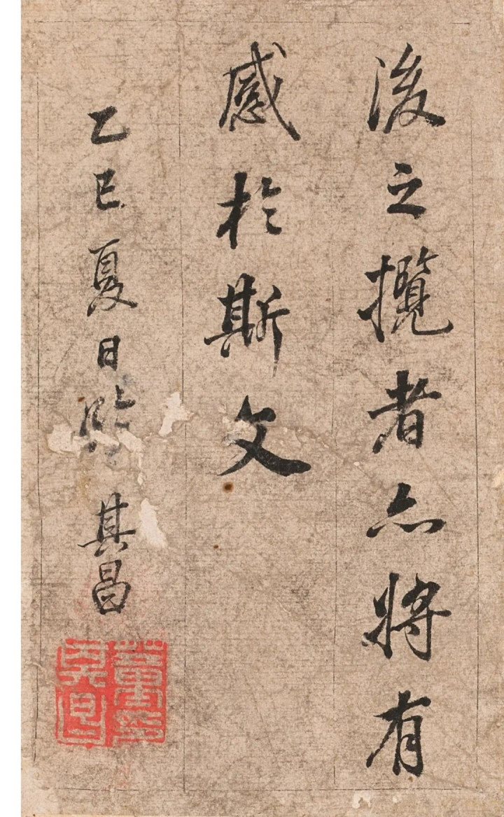 (行书《兰亭序》,文略,不录)。乙巳(1605)夏日临,其昌。钤印:「董其昌印」