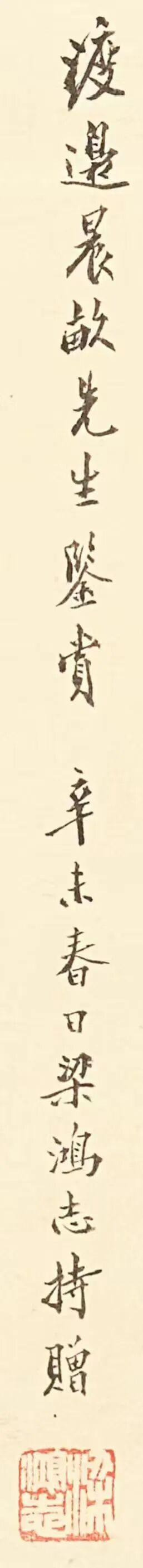 (梁鸿志)渡边晨亩先生鉴赏。辛未(1931)春日梁鸿志持赠。钤印:「梁鸿志」