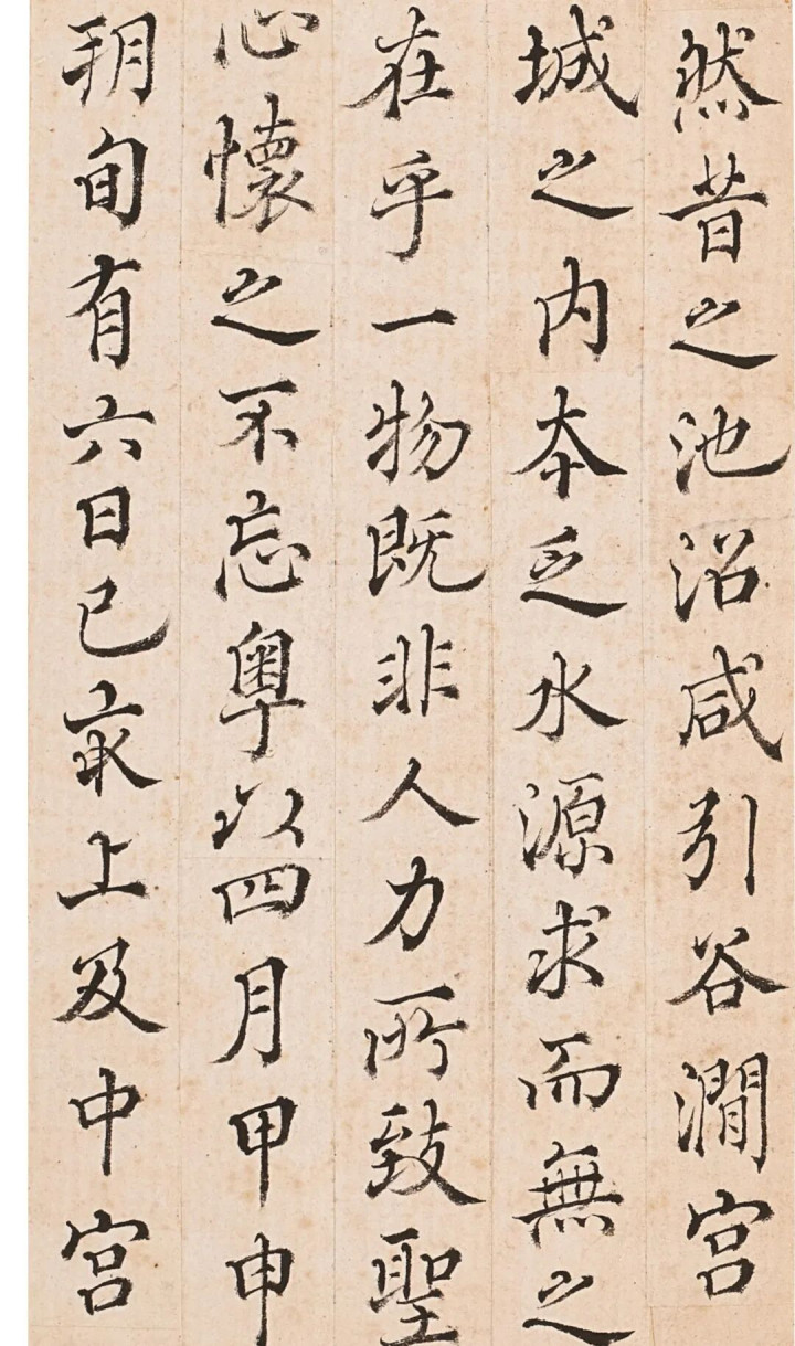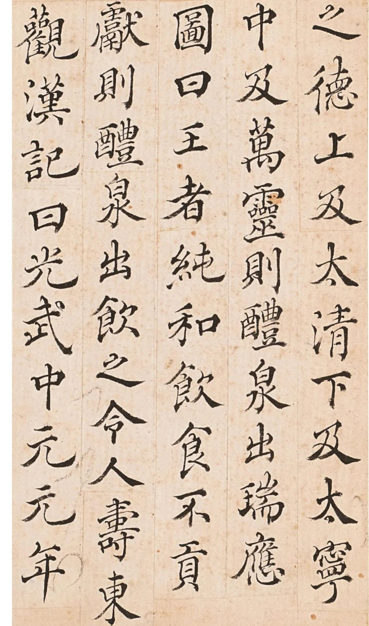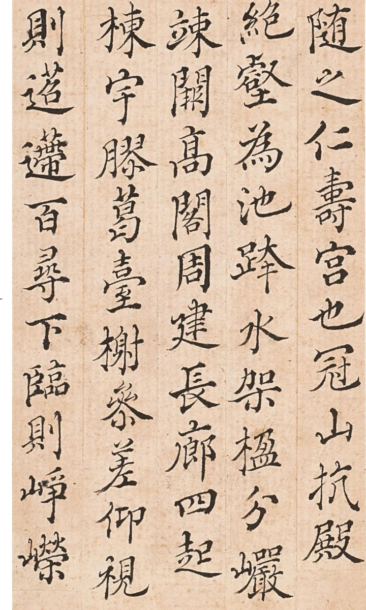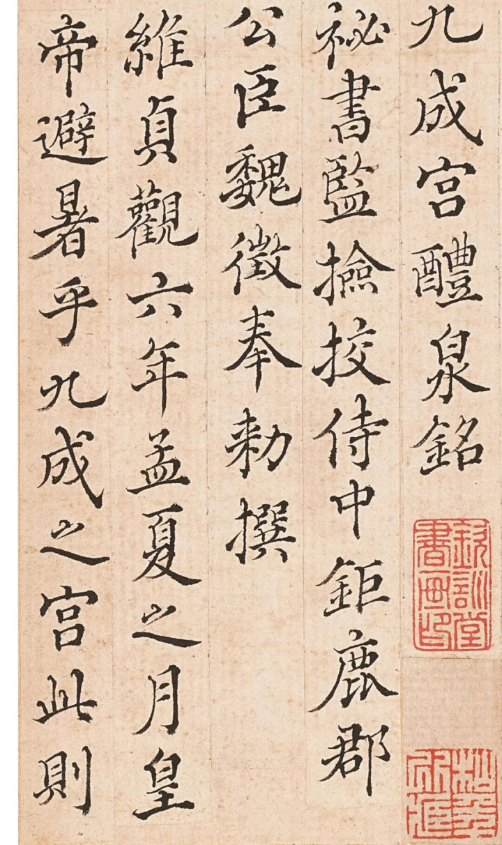 行楷临《九成宫醴泉铭》,文略,不录)。乾隆初元(1736)春二月张照临。钤印:「张照私印」、「得天」