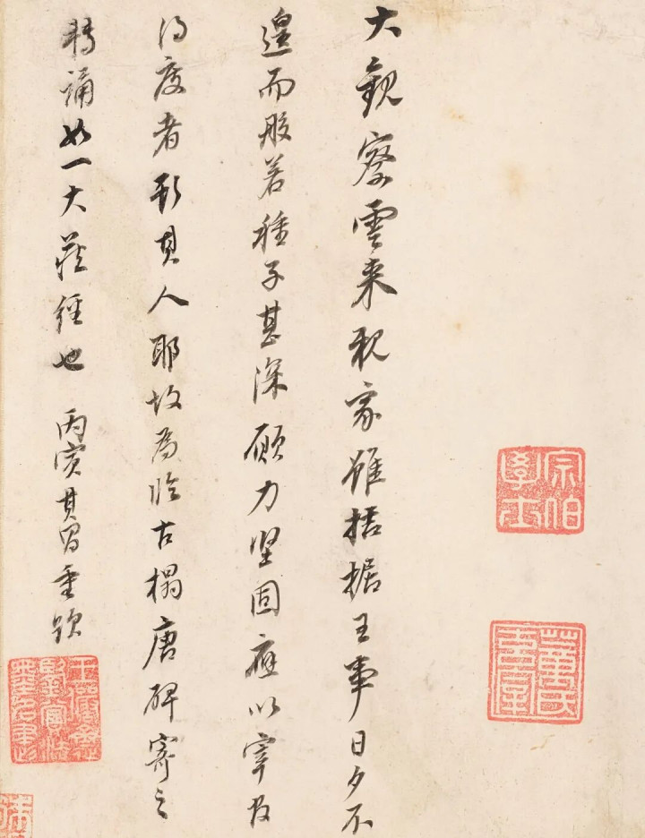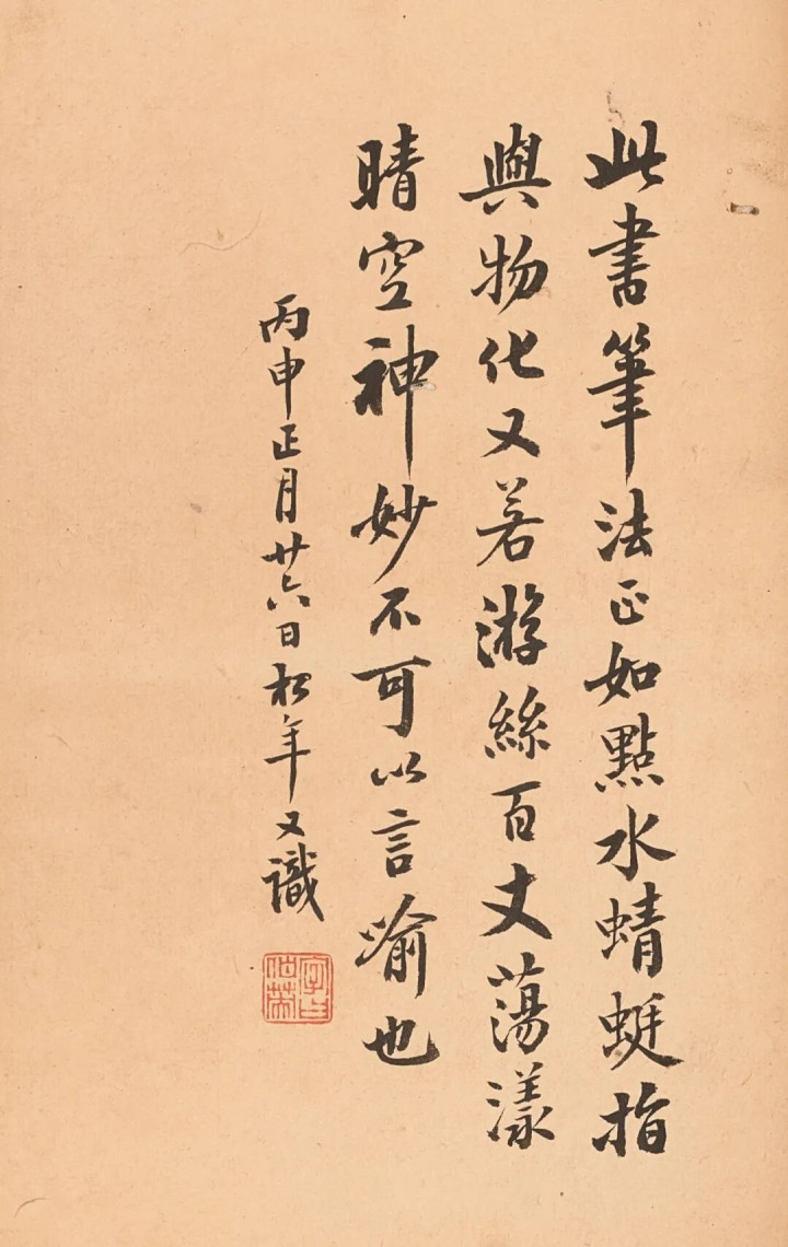 大观察云来亲家虽拮据,王事日夕不遑,而般若种子甚深,愿力坚固,应以宰官得渡者形其人耶。故为临古榻唐碑寄之,转颂如一大藏经也。丙寅(1626)其昌重题。